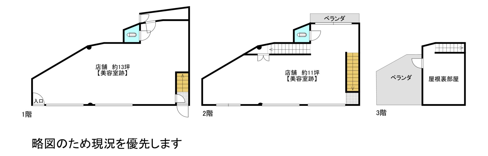 過去に美容室として利用されていた店舗で、美容室・ネイル・エステサロンなどのサービス業に最適な物件です。設備レイアウトもしやすい間取りとなっており、事務所としての利用も可能です。 また、駅から徒歩6分とアクセス良好な立地で、お客様にも通っていただきやすい環境です。 なお、敷地内に駐車場はございませんので、近隣での確保が必要となります。 1階・2階ともに店舗スペースとして利用でき、3階には屋根裏部屋もあり、収納やバックヤードとしても活用いただけます。 事業内容に合わせて柔軟にレイアウトできるのが魅力です。 ご内覧も可能ですので、ぜひ一度ご覧ください。 お気軽に三幸不動産までお問い合わせください。 ※建ぺい率オーバーの物件となります。